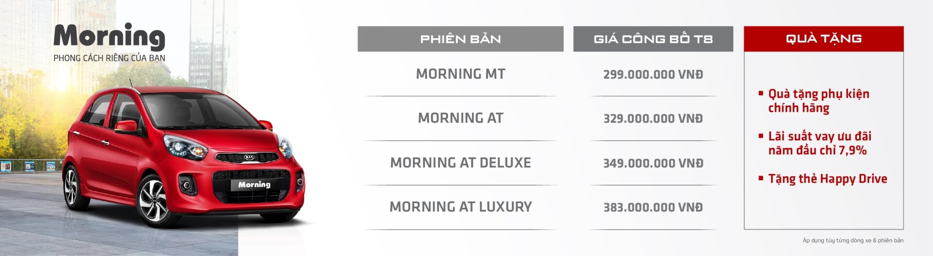 Trước những diễn biến đang còn phức tạp của dịch Covid 19 với mong muốn đồng hành và hỗ trợ tốt nhất cho các khách hàng, trong tháng 9 Kia Việt Nam tiếp tục áp dụng ưu đãi giá mới và tăng thêm quà tặng trang bị cao cấp, ưu đãi vay mua xe với lãi suất cạnh tranh nhất thị trường cho các khách hàng mua xe Kia trên toàn quốc. Đặc biệt, đây là cơ hội hiếm có trong năm khi chỉ từ 299 triệu đồng, khách hàng đã có thể sở hữu xe Kia nhằm đảm bảo an toàn cho gia đình khi di chuyển trong mùa dịch. Giá bán, quà tặng được áp dụng tùy từng dòng xe và phiên bản.