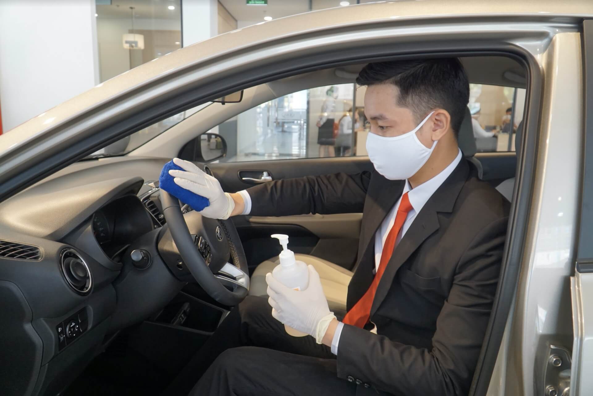 Các mẫu xe lái thử tại đại lý cũng thường xuyên được kiểm tra và vệ sinh sạch sẽ. Các khu vực mà khách thường tiếp xúc trên xe như tay nắm cửa, vô-lăng, núm điều khiển, màn hình giải trí… được sát khuẩn trước khi phục vụ lượt khách tiếp theo.