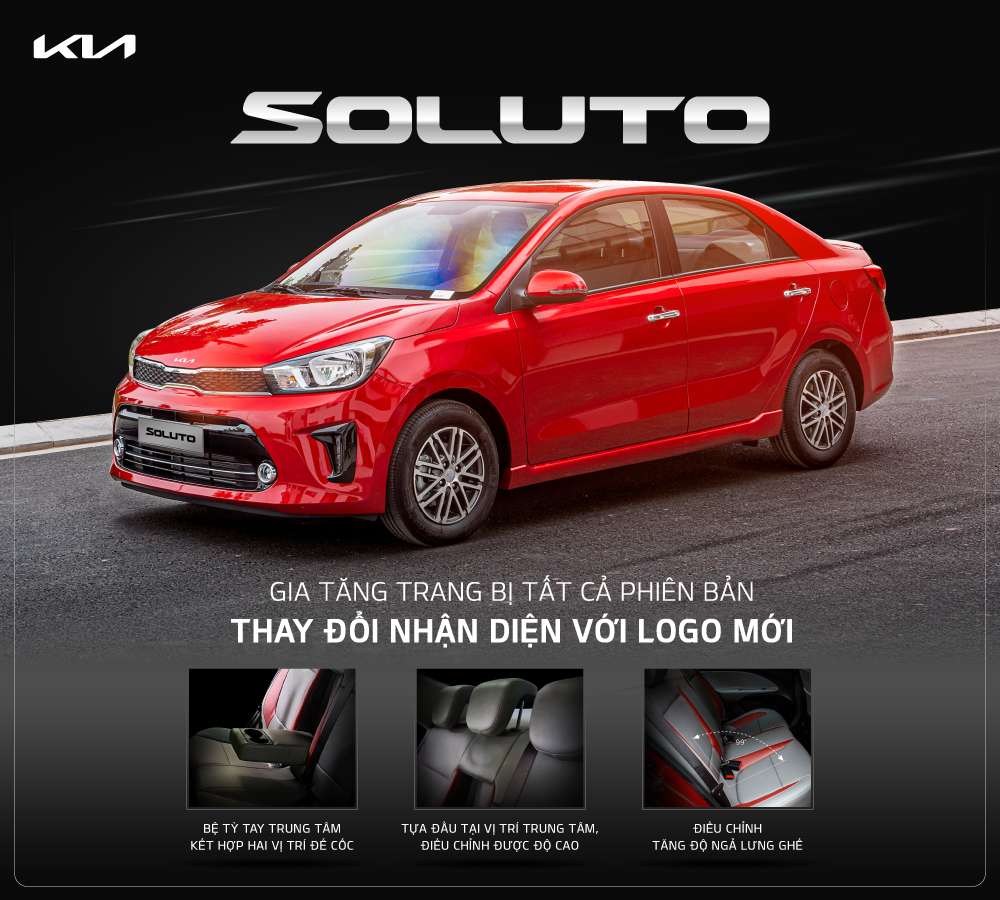 Để đáp ứng nhu cầu di chuyển vào dịp cuối năm và thị hiếu ngày càng tăng của khách hàng, đồng thời tăng sức cạnh tranh cho mẫu xe Kia Soluto trong phân khúc B-sedan, Kia Việt Nam gia tăng trang bị trên tất cả các phiên bản và thay đổi nhận diện với logo mới.
