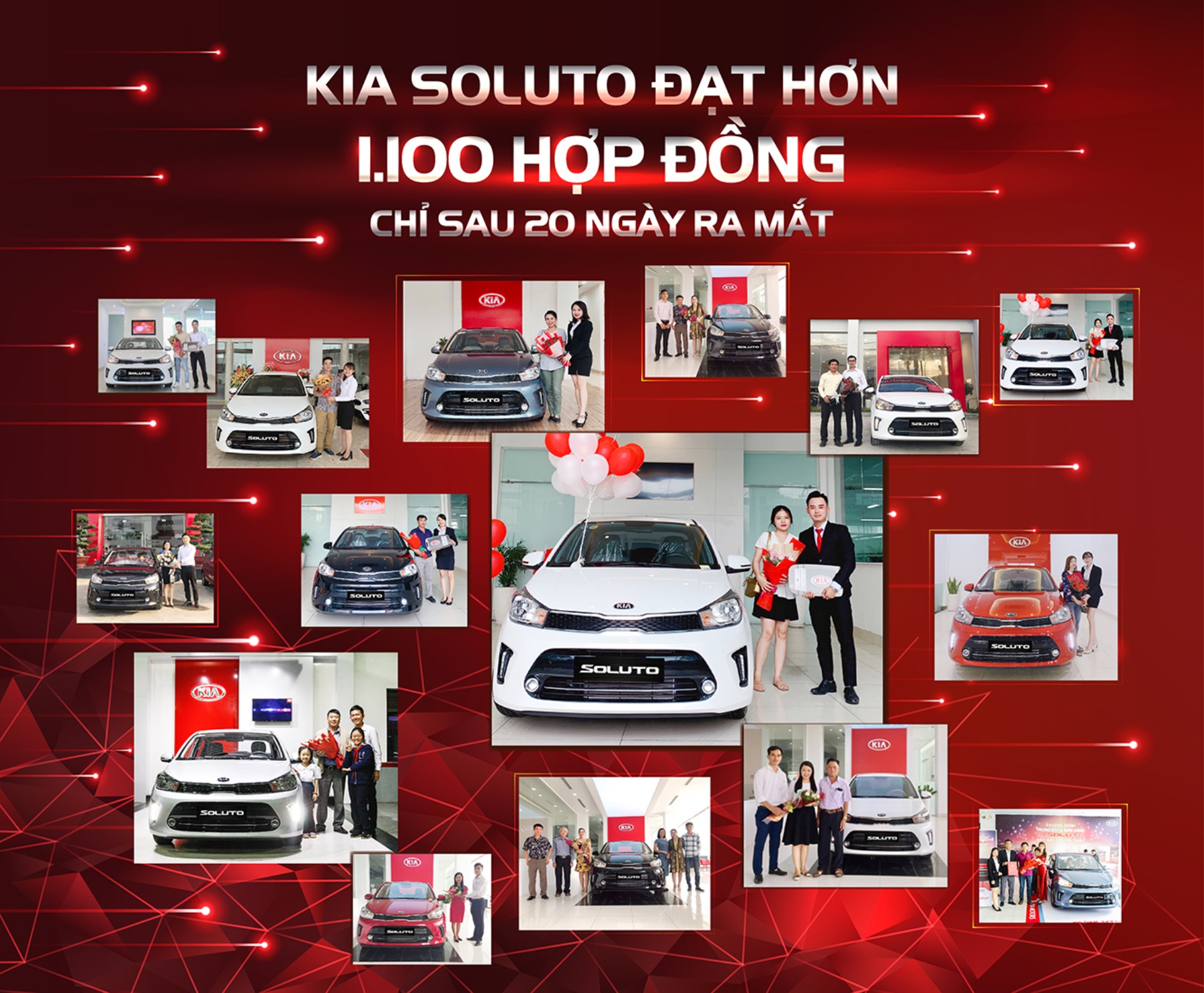 Chỉ sau 20 ngày ra mắt, Kia Soluto đã gặt hái được thành công ấn tượng với hơn 1.100 hợp đồng mua xe. Với thành tích trên, Kia Soluto đã phá vỡ kỷ lục của các mẫu xe tiền nhiệm và lọt vào top những mẫu xe bán chạy nhất của KIA trong tháng 9.