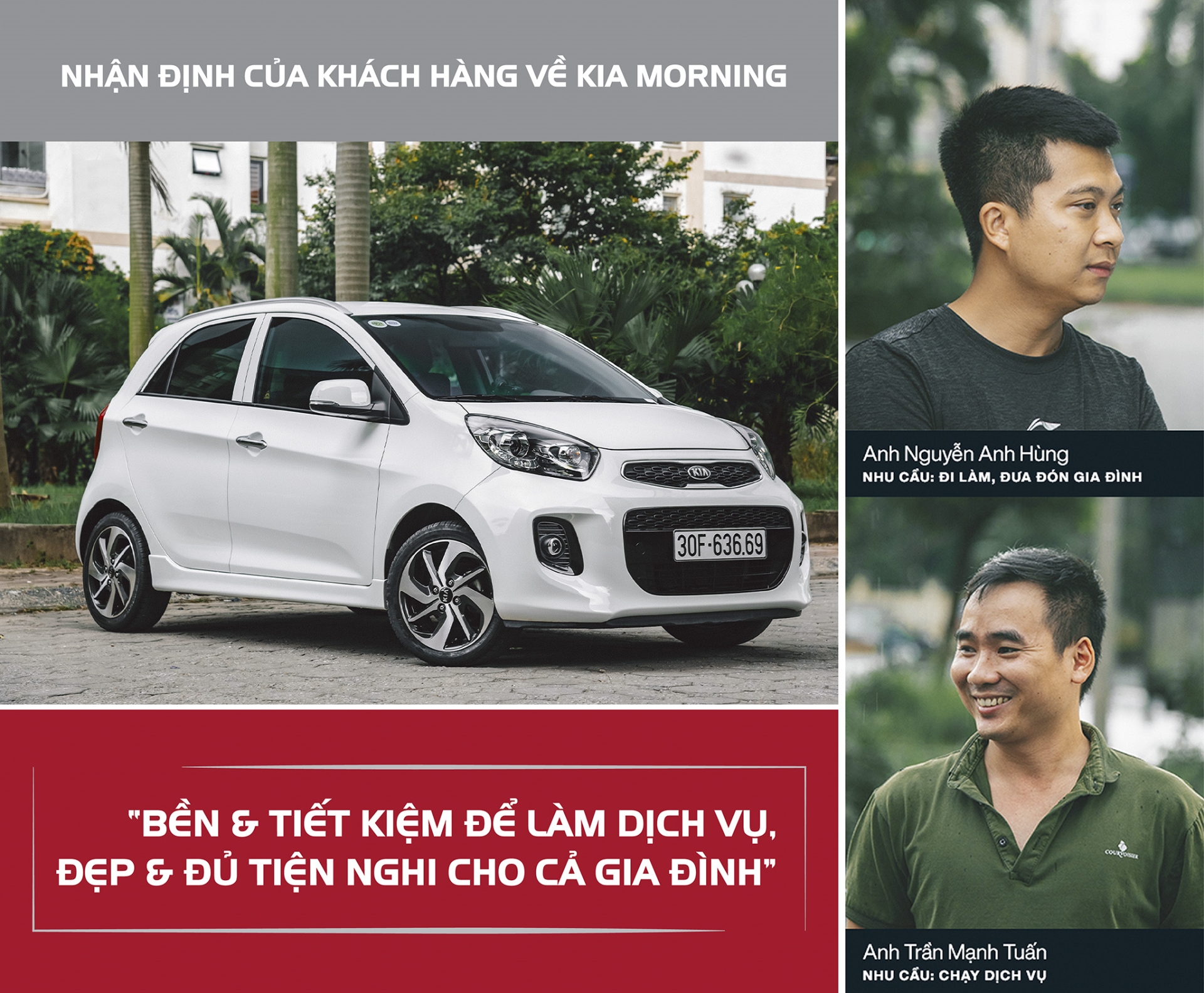 Nhiều khách hàng khi sử dụng Kia Morning vào các mục đích khác nhau đều đưa đến kết luận cuối cùng rằng đây là mẫu xe nhỏ có thiết kế đẹp, hiện đại, bền bỉ, tiết kiệm nhiên liệu và có giá phải chăng.