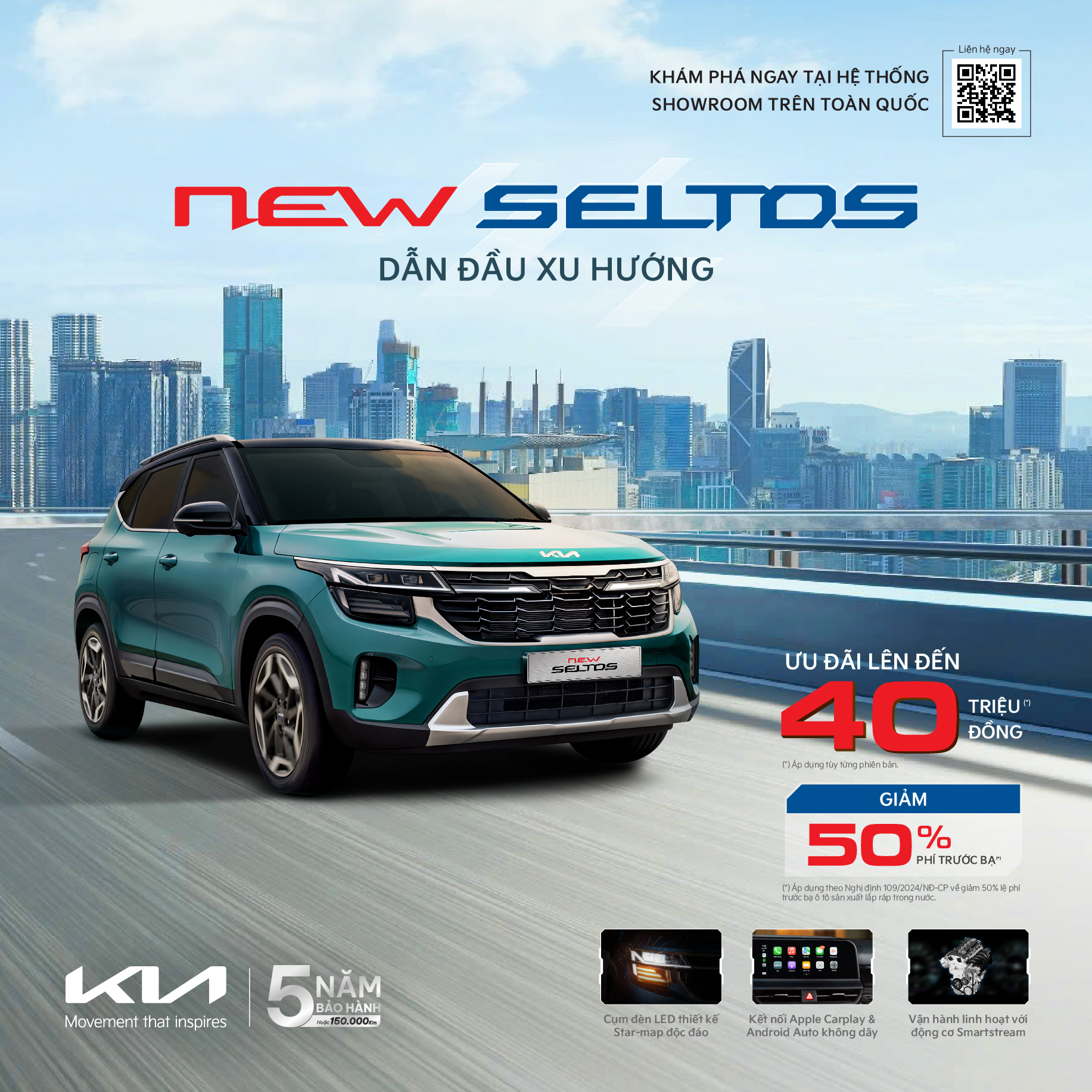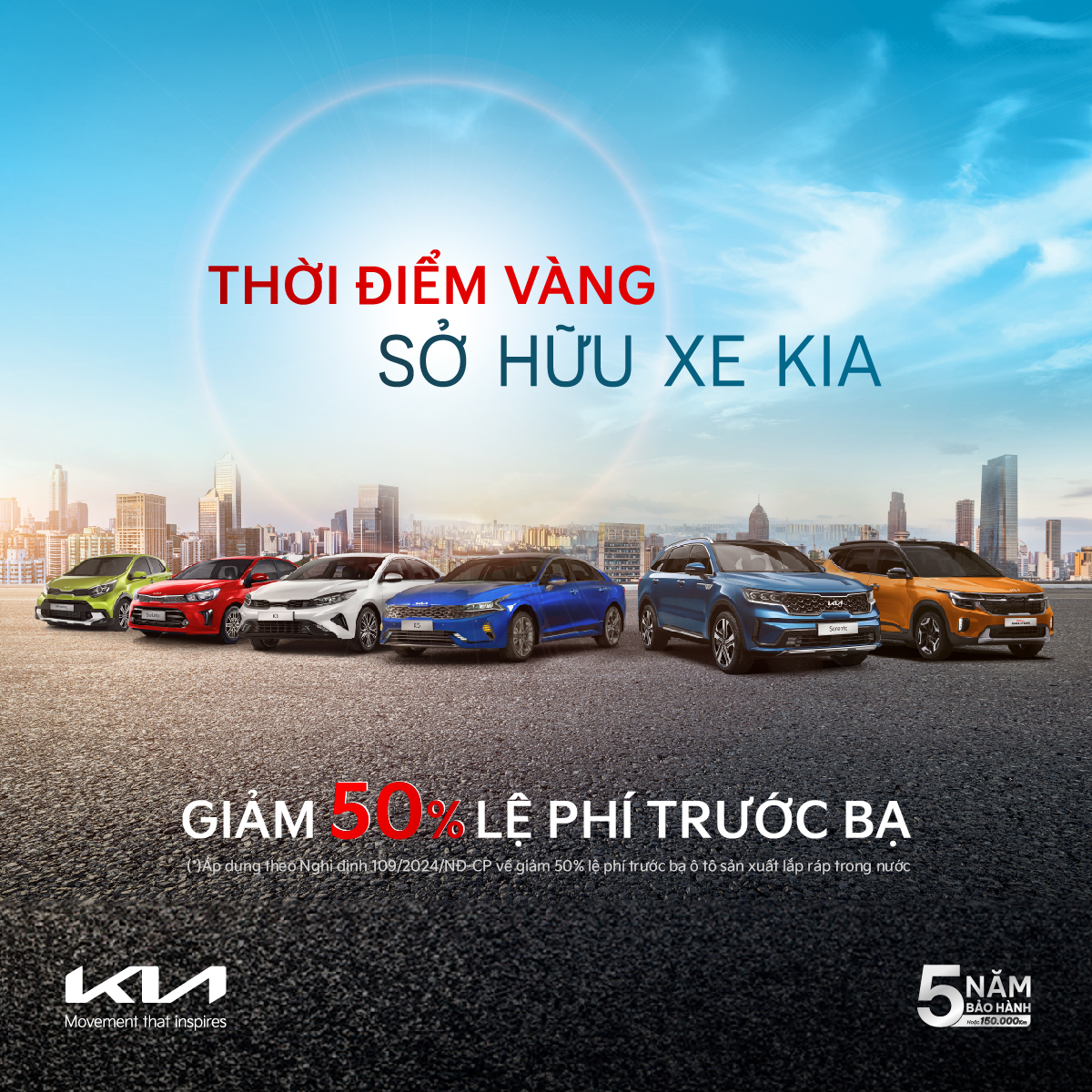 Từ ngày 18/10/2024, Khách hàng sở hữu xe Kia được hưởng ưu đãi kép với ưu đãi giá đặc biệt lên đến 100 triệu đồng, quà tặng 1 năm bảo hiểm vật chất từ THACO AUTO cùng chính sách giảm 50% lệ phí trước bạ từ chính phủ. Đây là cơ hội vàng trong năm để sở hữu xe Kia với mức ưu đãi kép cùng giá bán tốt nhất, khách hàng có thể tiết kiệm từ hàng chục đến cả trăm triệu đồng khi mua xe.